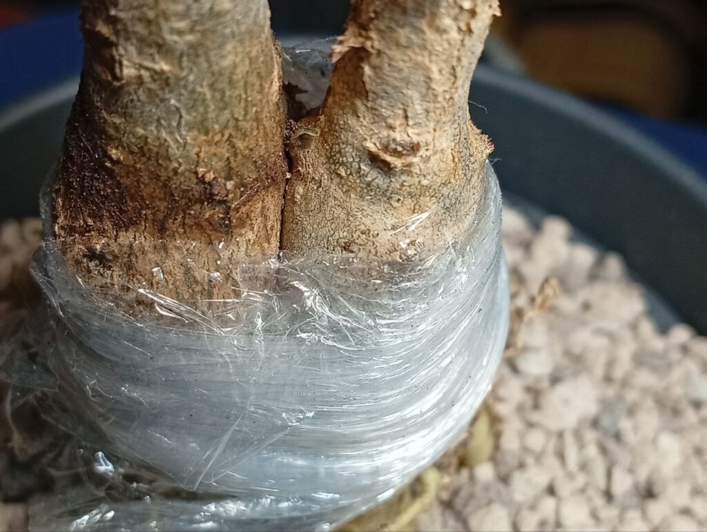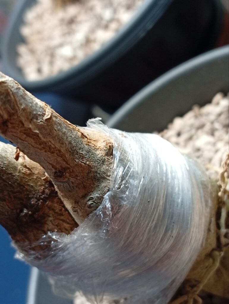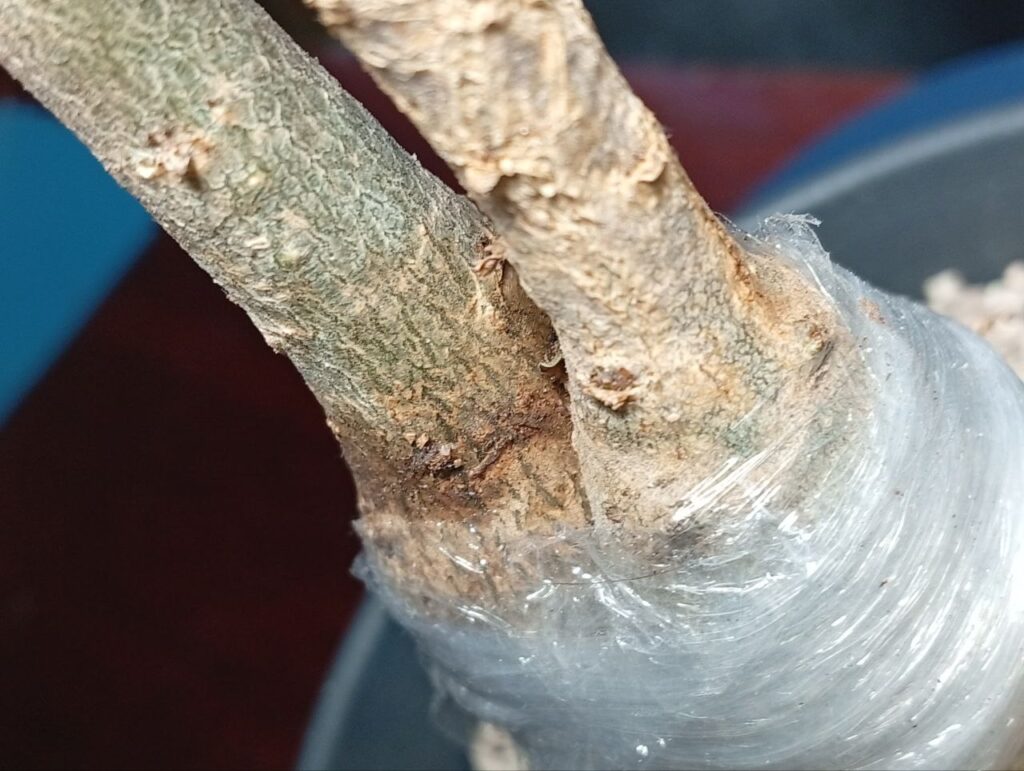 - Хірургічне звільнення: Щоб не допустити деформації або прілості молодих пагонів, ми зробили точкові надрізи у плівці. Тепер бруньки мають простір для дихання та росту, а зона зрощення залишається під надійною фіксацією.