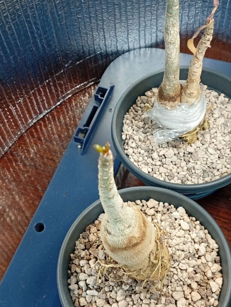- Тургор: Каудекси помітно «налилися», шкірка стала пружною та набула здорового глянцю.