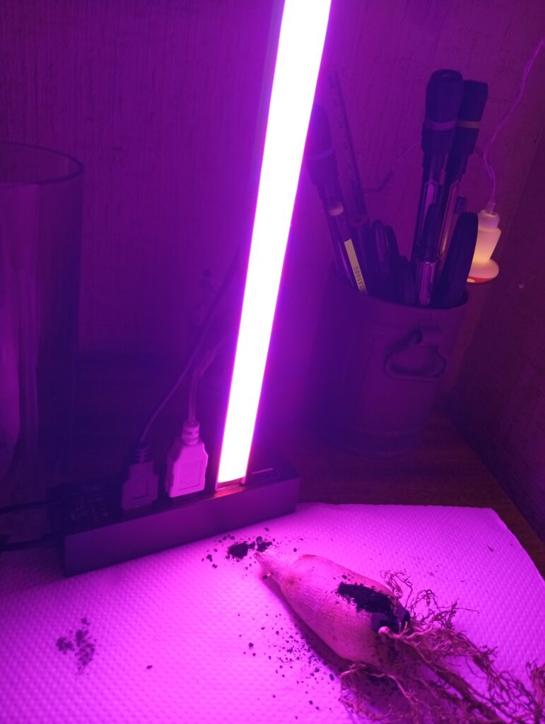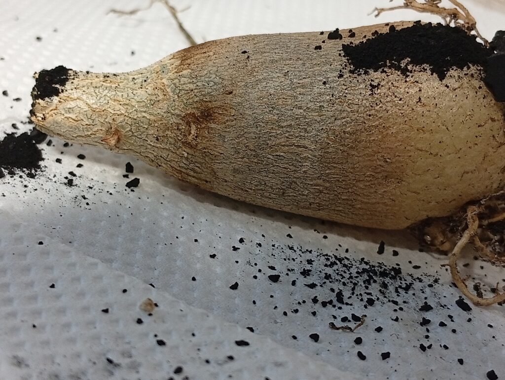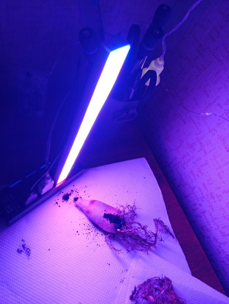 Коли операція зі зрізами була завершена, я почав уважно оглядати сам каудекс. І тут на мене чекав новий привід для паніки: я помітив підозрілі зморшки біля основи. У голові одразу промайнула думка: «Невже гниль пішла глибше, ніж я думав?». Хвилювання за долю Пацієнта №4 досягло піку — втратити трирічну рослину через невидимого ворога всередині було б справжньою трагедією. Зрозумівши, що сигаретного попелу для такої серйозної ділянки замало, я вирішив не ризикувати й вирушив до аптеки за активованим вугіллям. Повернувшись, я щедро присипав не лише зрізи, а й усі сумнівні зморшки на каудексі, після чого відправив мого «героя» під фітопанельку на інтенсивну реабілітацію. Світло ламп тепер мало стати його головним лікарем.