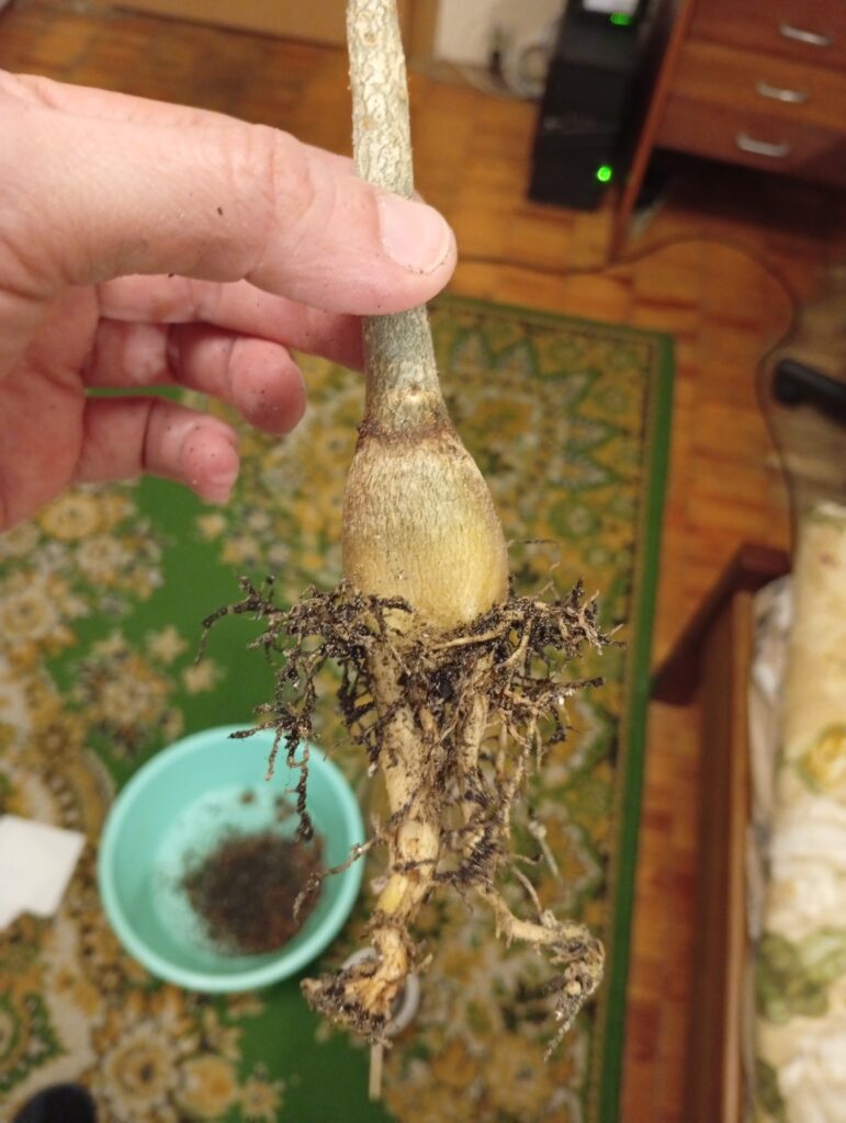 Все починається з вибору рослин. Для успішного зрощування найкраще підходять молоді аденіуми приблизно однакового віку та товщини. Перед процедурою важливо дістати їх із ґрунту, ретельно промити коріння та дати їм трохи підсохнути, щоб тканини стали менш крихкими та більш піддатливими до маніпуляцій.